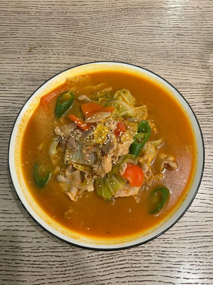 Zupa z kimchi była bardzo ostra, czego w zasadzie się spodziewałam. Niestety była też bardzo tłusta i wydawała się nieświeża.