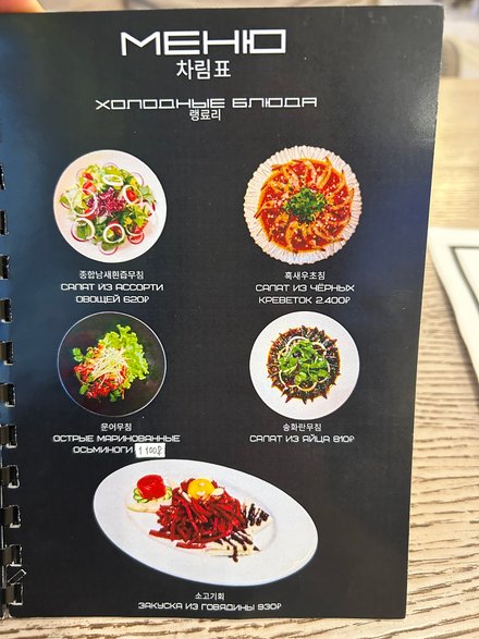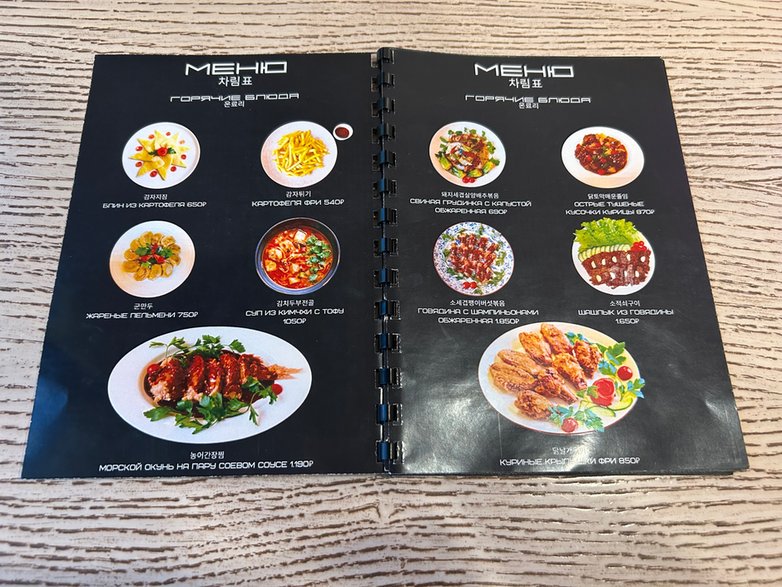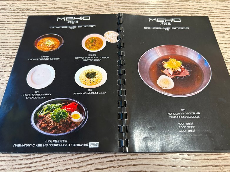 Dla przykładu zupa z kimchi z tofu kosztuje 1050 rubli (48 zł 13 gr), a okoń morski gotowany na parze z sosem sojowym — 1190 rubli (54 zł 55 gr).