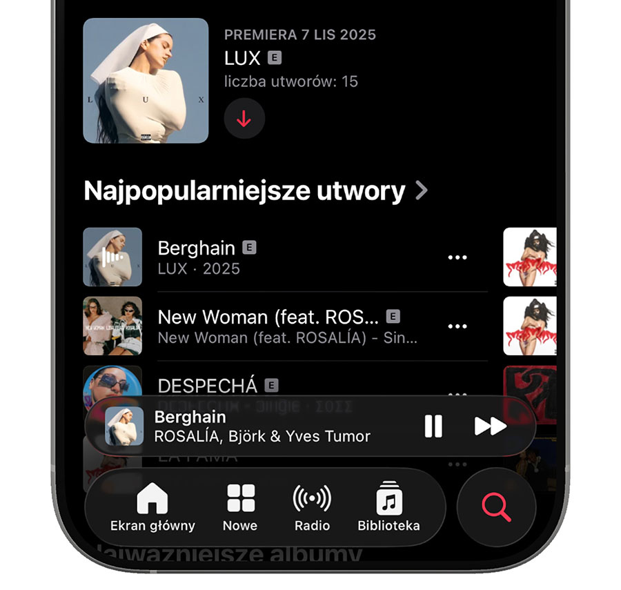 • Łatwiejsze przełączanie pomiędzy utworami w apce Muzyka