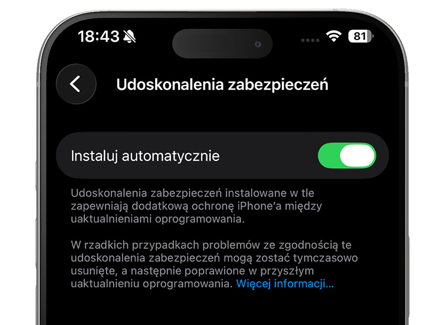 Udoskonalenia zabezpieczeń instalowane w tle zapewniają dodatkową ochroną iPhone’a między uaktualnieniami oprogramowania.
