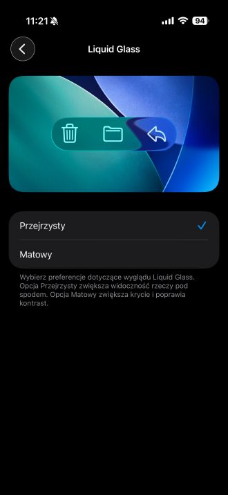iOS 26.1 – jak zmienić intensywność efektu Liquid Glass?