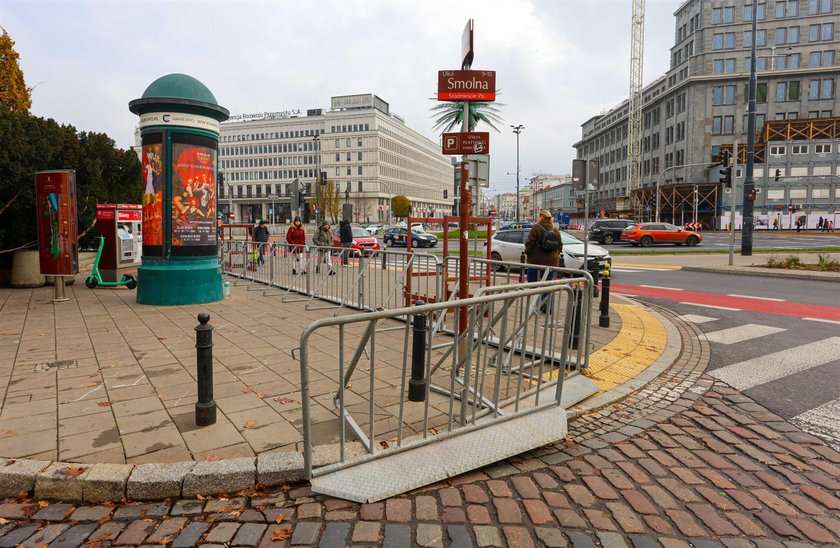 Ogrodzenie stoi też na skrzyżowaniu z Nowym Światem.