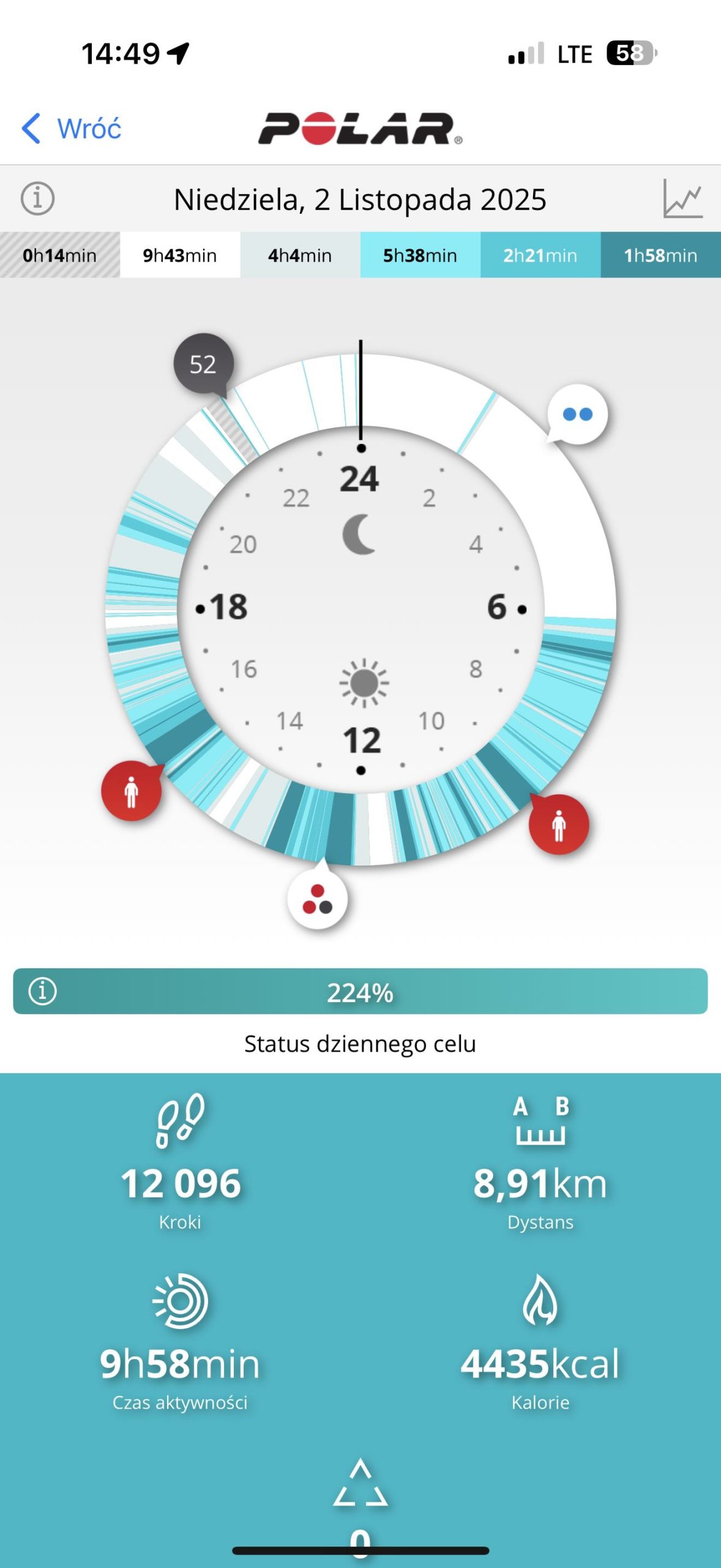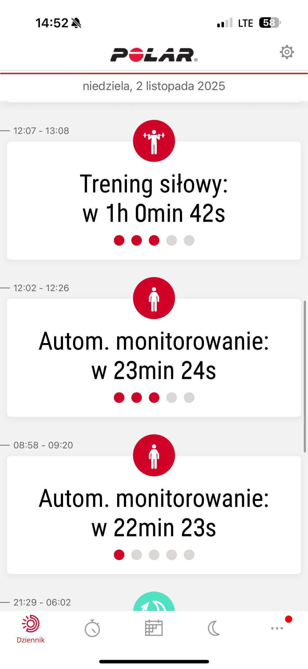 Gdy myślę o Polar Loop, w pierwszej kolejności mam przed oczami funkcje, które mógłbym określić jako prozdrowotne. Chodzi mi głównie o monitorowanie aktywności, czyli tego, co robię w ciągu dnia i w nocy. Nosząc opaskę – najlepiej w ogóle jej nie ściągać – otrzymamy dostęp do informacji o aktywności fizycznej. Przy czym od razu trzeba podkreślić, że wszelka aktywność będzie rejestrowana całkowicie automatycznie, co oznacza komfort i brak potrzeby pamiętania o tym, że coś należy uruchomić lub włączyć. Rejestracja aktywności dzieje się automatycznie i dla lepszego zobrazowania podam kilka przykładów.