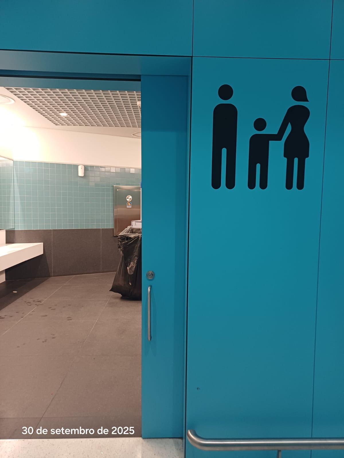 A mesma fonte partilhou uma fotografia da entrada da casa-de-banho, captada a 30 de setembro, e que mostra a sinalética presente no local, alusiva ao facto de se tratar de um espaço destinado a crianças pequenas acompanhadas pelos pais.