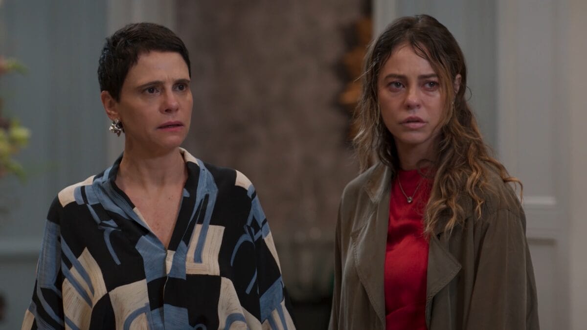 As duas ouvem a notícia (Foto: Reprodução, Globoplay)