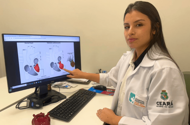 A enfermeira aponta a semelhança do ventrículo alterado com o formato do vaso