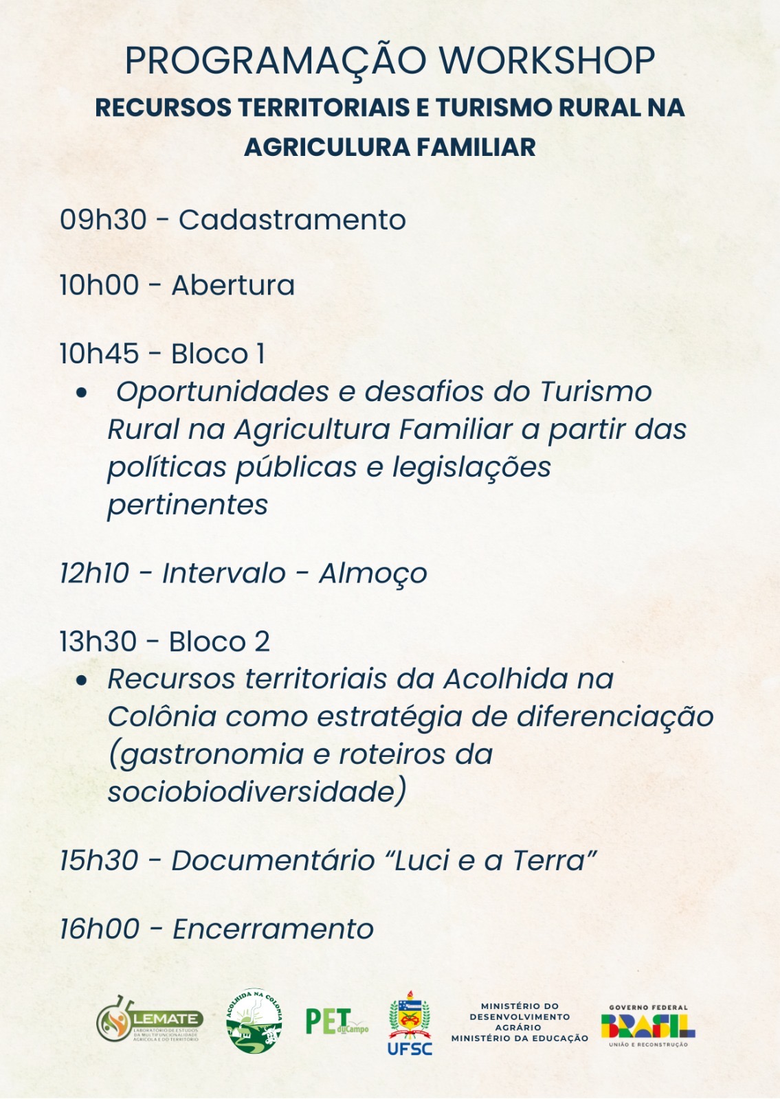 O Laboratório de Estudos da Multifuncionalidade Agrícola e do Território e o Programa de Educação Tutorial da Educação do Campo organizam o workshop. Na UFSC, a coordenação foi da professora Thaise Costa Guzzatti, do Departamento de Educação do Campo.