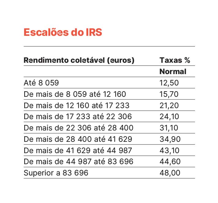 Em julho, o Parlamento aprovou redução do IRS em 2025 assim como o compromisso de fazer uma redução adicional em 2026 de 0,3 pontos percentuais (pp) nas taxas do IRS do 2.º ao 5.º escalão, mas, como o IRS é um imposto progressivo, também os escalões superiores vão ser beneficiados. O Governo se comprometeu a refletir no OE2026 este novo alívio fiscal, já aprovado no Parlamento, fruto de um acordo com o Chega, com um impacto orçamental de 111 milhões.
