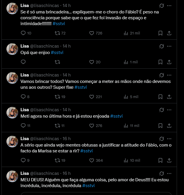 Tudo começou com o episódio conhecido como a “polémica do ovo”, que tem gerado intensas discussões entre fãs do programa nas redes sociais. Lisa não ficou indiferente e, através do “X” (antigo Twitter), partilhou o seu desagrado com o que viu.