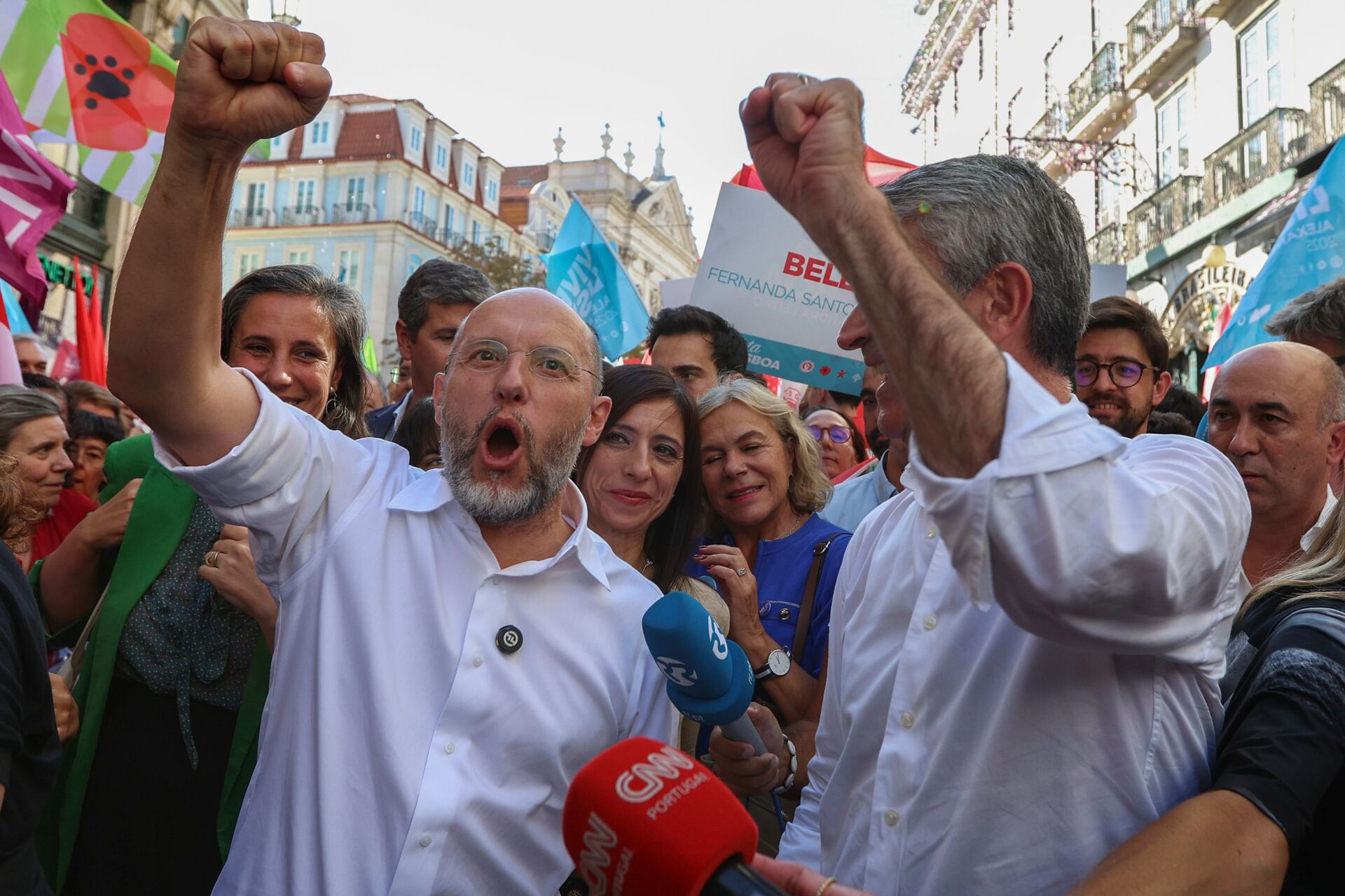 Na descida do Chiado também esteve a deputada única do PAN, Inês Sousa Real, mas faltou o PCP, que não aceitou integrar a coligação da antiga ministra socialista em Lisboa.