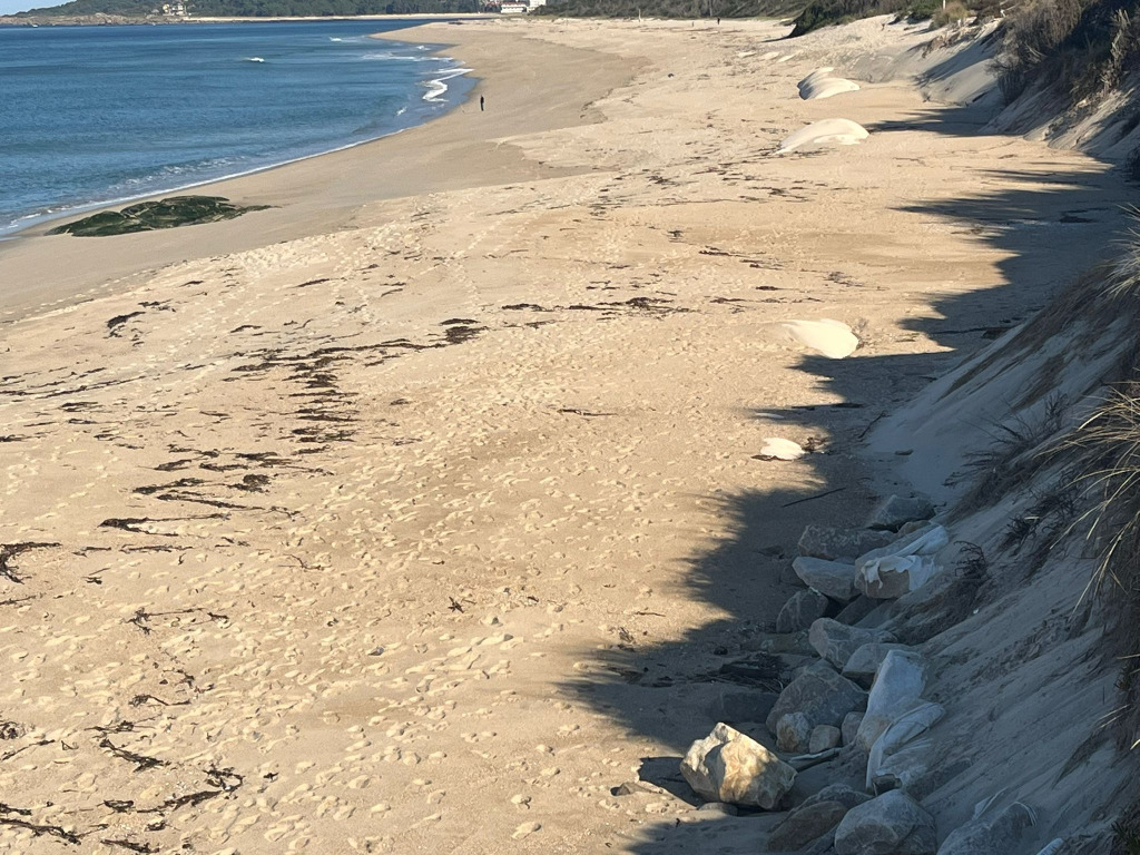 Recorde-se que, nos últimos meses, a ação do mar retirou uma quantidade significativa de areia deixando expostos os tubos protetores de geotêxtil.