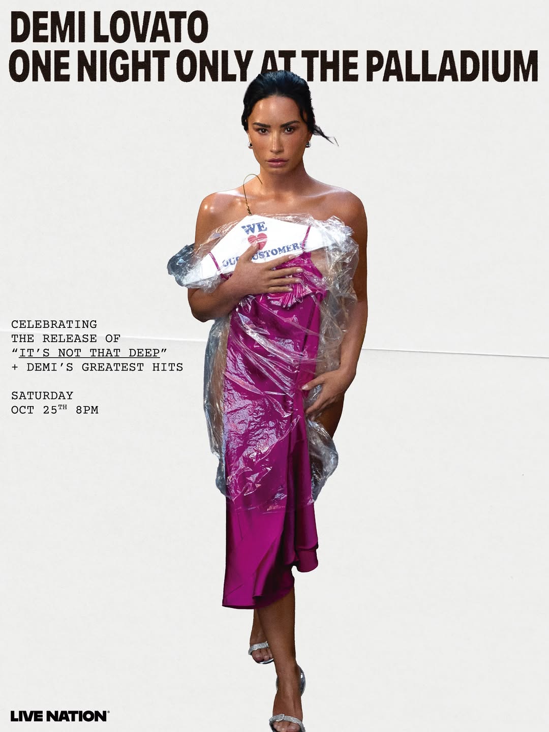 “Uma noite para celebrar ‘It’s Not That Deep’ + todas as minhas músicas favoritas dos anos que nos levaram a este momento!! Esta era é uma celebração da jornada que me trouxe até onde estou hoje. Não anuncio um show próprio desde 2023 e senti muita falta de ver seus rostos. Mal posso esperar para voltar a um lugar com vocês e cantar, dançar, gritar e rebolar JUNTOS!!,” comemorou Demi.