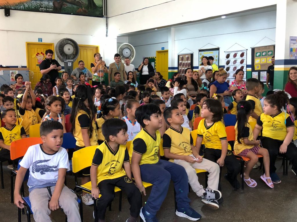 Com o tema “Zuzu e a Tela Brilhante e o Cupuaçu Mágico”, a Prefeitura de Manaus, por meio da Secretaria Municipal de Educação (Semed), promoveu, nesta sexta-feira, 17/10, o encerramento da “Semana do Livro Infantil” no Centro Municipal de Educação Infantil (Cmei) Abelhinha, localizado no bairro Coroado 2, zona Leste da capital. A unidade, que atende 440 crianças nos turnos matutino e vespertino, marcou o fim de uma semana repleta de atividades voltadas à valorização da leitura e do universo literário.
