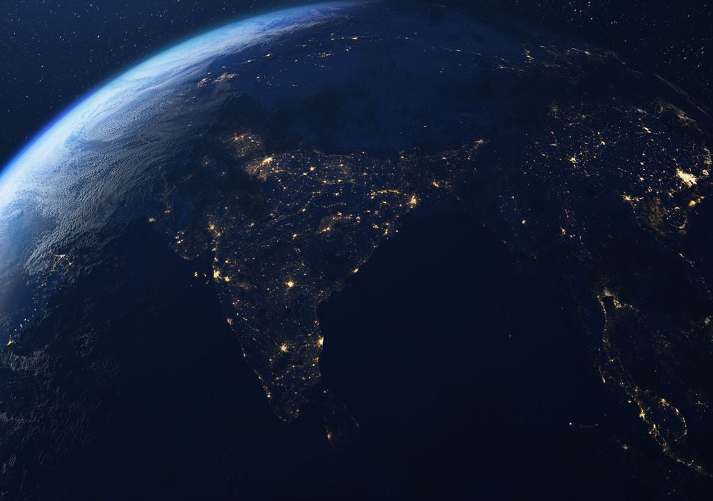 No Sudeste Asiático, megacidades como Bangkok, Jacarta e Manila se destacam com seus cinturões de luz, contrastando com áreas rurais quase invisíveis do espaço.