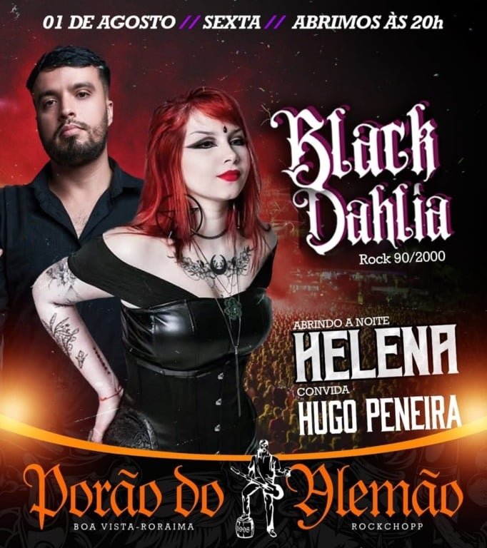Nesta sexta, (01), Helena & Dhalia vão incendiar o palco com um show poderoso, cheio de presença e muito rock pesado! O encontro é no Porão do Alemão, imperdível para os amantes do gênero. Prepare-se para uma noite intensa e cheia de energia!