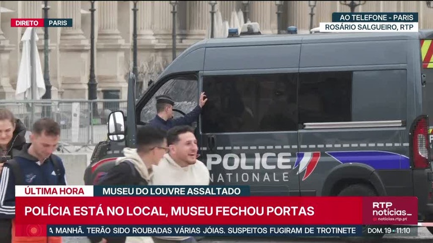 “Estou no local ao lado das equipas do museu e da polícia”, acrescenta a ministra, precisando que “as investigações” estão em curso. Segundo revelou uma fonte do Ministério do Interior à RTP, os assaltantes conseguiram escapar com joias. Os danos estão a ser avaliados.