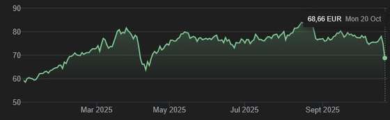 Ações do BNP Paribas estão a cair 10% na bolsa de Paris, embora continuem a registar uma valorização de 16% desde o início do ano. FONTE: Google Finance