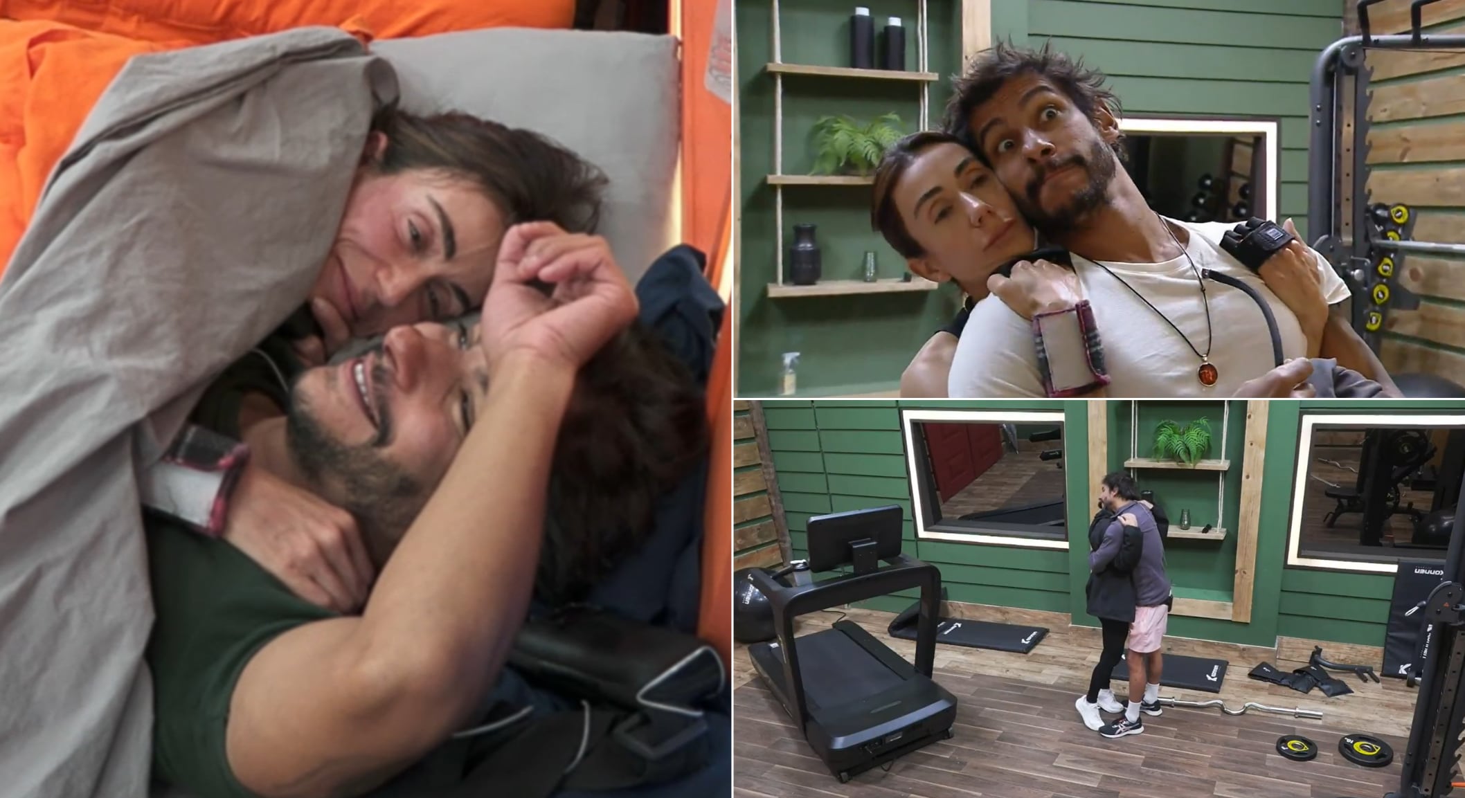 De manhã, tomaram o café juntos e treinaram a sós na academia. Rolou um monte de abraços entre um exercício e outro. O peão brincou: “Meu Deus, sai de perto de mim”, e a jornalista rebateu: “Tô tentando!”