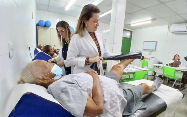 A gerente do Ambulatório de Fisioterapia do CIDH, Sandra Brasil Soares, explica que o serviço tem como foco pacientes atendidos no CIDH com neuropatia diabética. Esse tipo de neuropatia é uma complicação do diabetes caracterizada, principalmente, pela diminuição ou falta de sensibilidade em regiões como pés e mãos. “A pessoa pode pisar em um prego ou mesmo em uma pedrinha, que podem aderir ao sapato, por exemplo, e infectar. Quando o paciente vai olhar, muitas vezes nem sabe o que aconteceu, porque não está sentindo”, detalha Sandra.