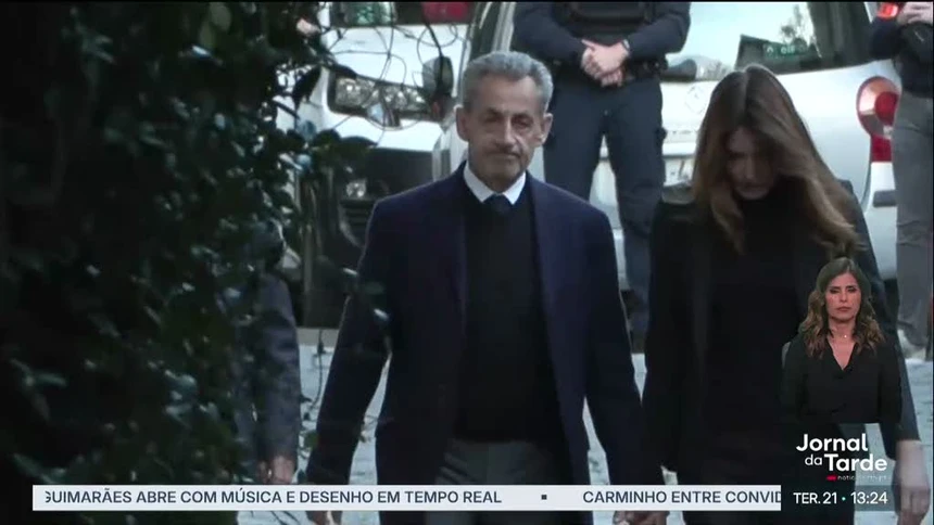 O ex-presidente de França saiu de casa pouco depois das 9h00 locais para se dirigir à cadeia onde se prevê que cumpra cinco anos pelo crime de conspiração criminosa na tentativa de utilização de dinheiro líbio, destinado a financiar a sua campanha eleitoral de 2007.