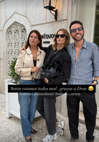 Aliás, num dos registos, à porta do restaurante, a apresentadora, de 47 anos, mostrou-se com ambos os amigos e acabou por deixar uma legenda com sentido de humor: “Assim estamos todos mal, graças a Deus!”