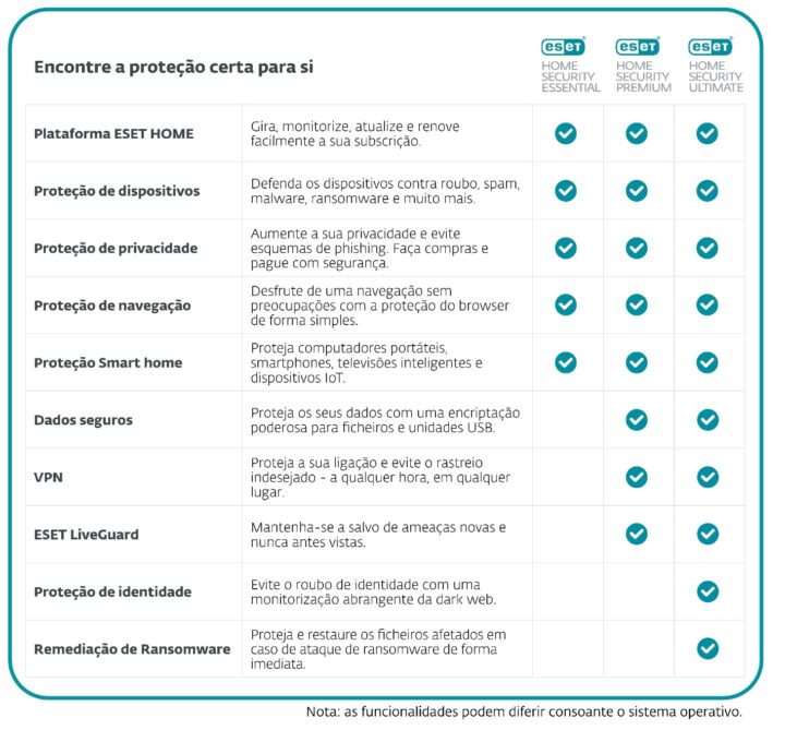 A proteção reforçada contra fraudes, a adição da Remediação de Ransomware e várias melhorias na proteção da privacidade tornam as ofertas da ESET, tanto de consumo como para SOHO, soluções robustas e completas para casas e pequenos escritórios/escritórios domésticos que procuram segurança fiável, com baixo impacto no desempenho e fácil de usar
