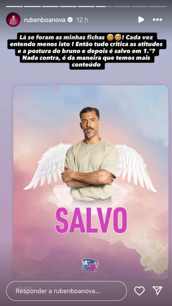 Contra todas as expectativas, Bruno Simão foi o primeiro concorrente salvo na gala do Secret Story do passado domingo, 26 de outubro. A salvação de Bruno gerou diversas reações nas redes sociais e Rúben Boa Nova que tinha apostado as suas fichas na expulsão do ex-futebolista, também reagiu.