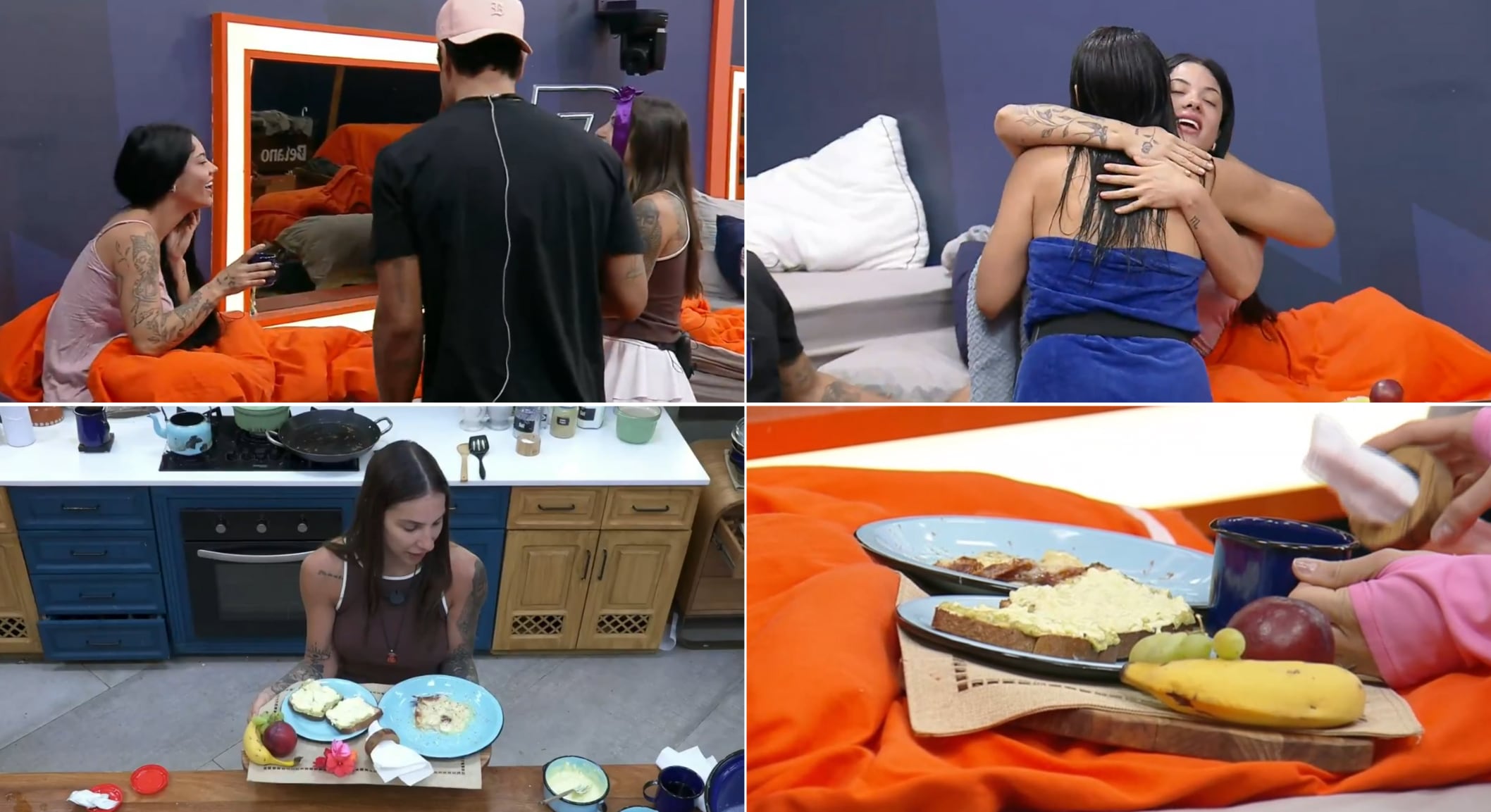 Na noite de domingo, os amigos acharam que já tinha passado da meia-noite quando começaram a parabenizar a peoa. Ela ficou emocionada e já foi dormir feliz! Logo pela manhã, enquanto ela ainda estava no sono, Maria Caporusso, Martina Sanzi e Will Guimarães se levantaram de mansinho e partiram para a cozinha!