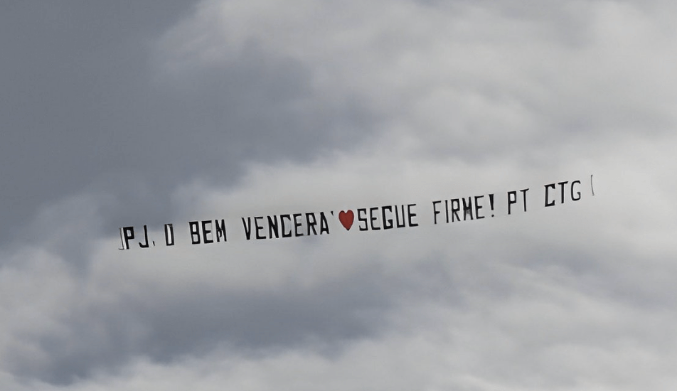 “Pedro Jorge o bem vencera. Segue firme! PT contigo”, podia ler-se na faixa do avião.