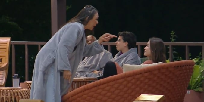 Após a cantoria da peoa, Yoná ficou cara a cara com ela e, com o dedo apontado no rosto da ex-amiga, disparou: