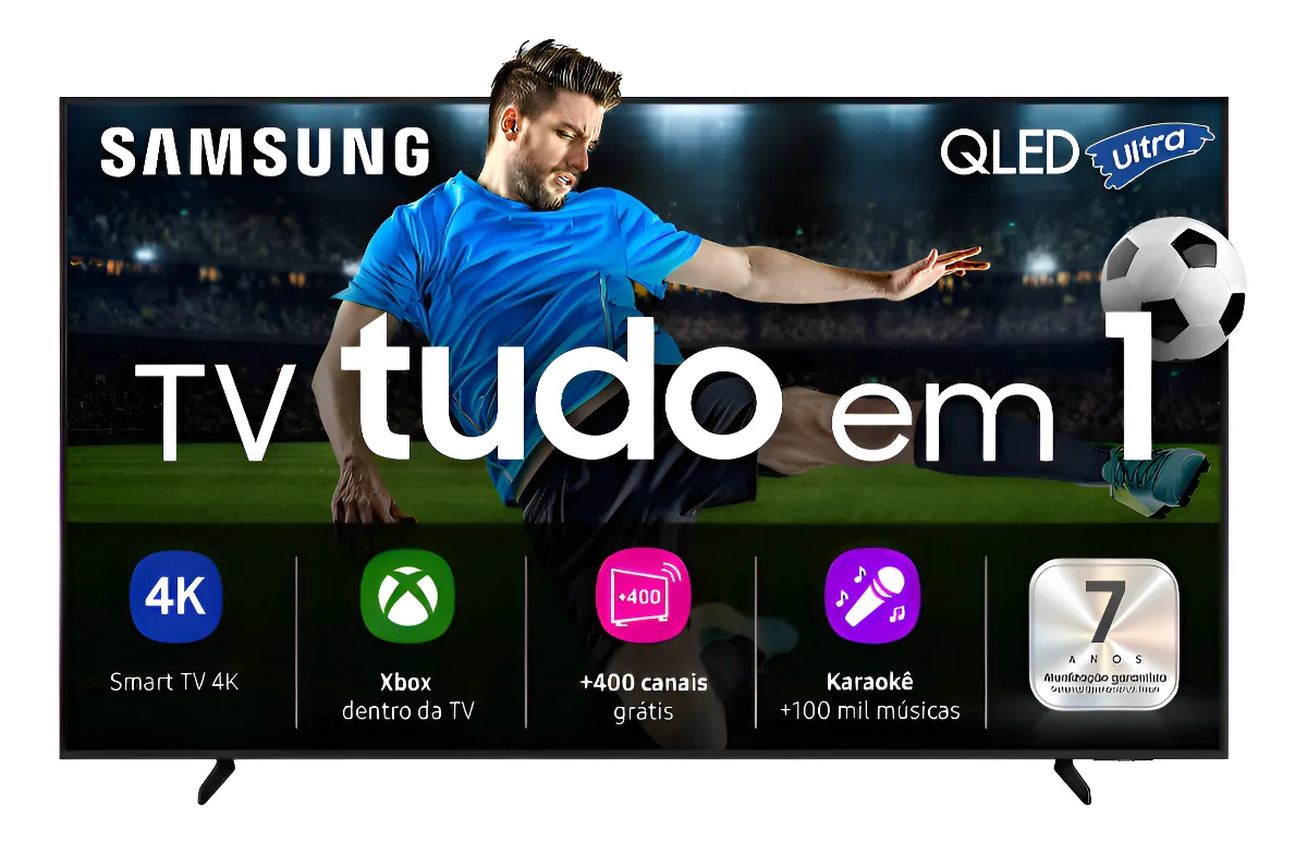 • Resolução: 4K UHD, com suporte a HDR10+ e processador Neural Quantum 4K para upscaling inteligente