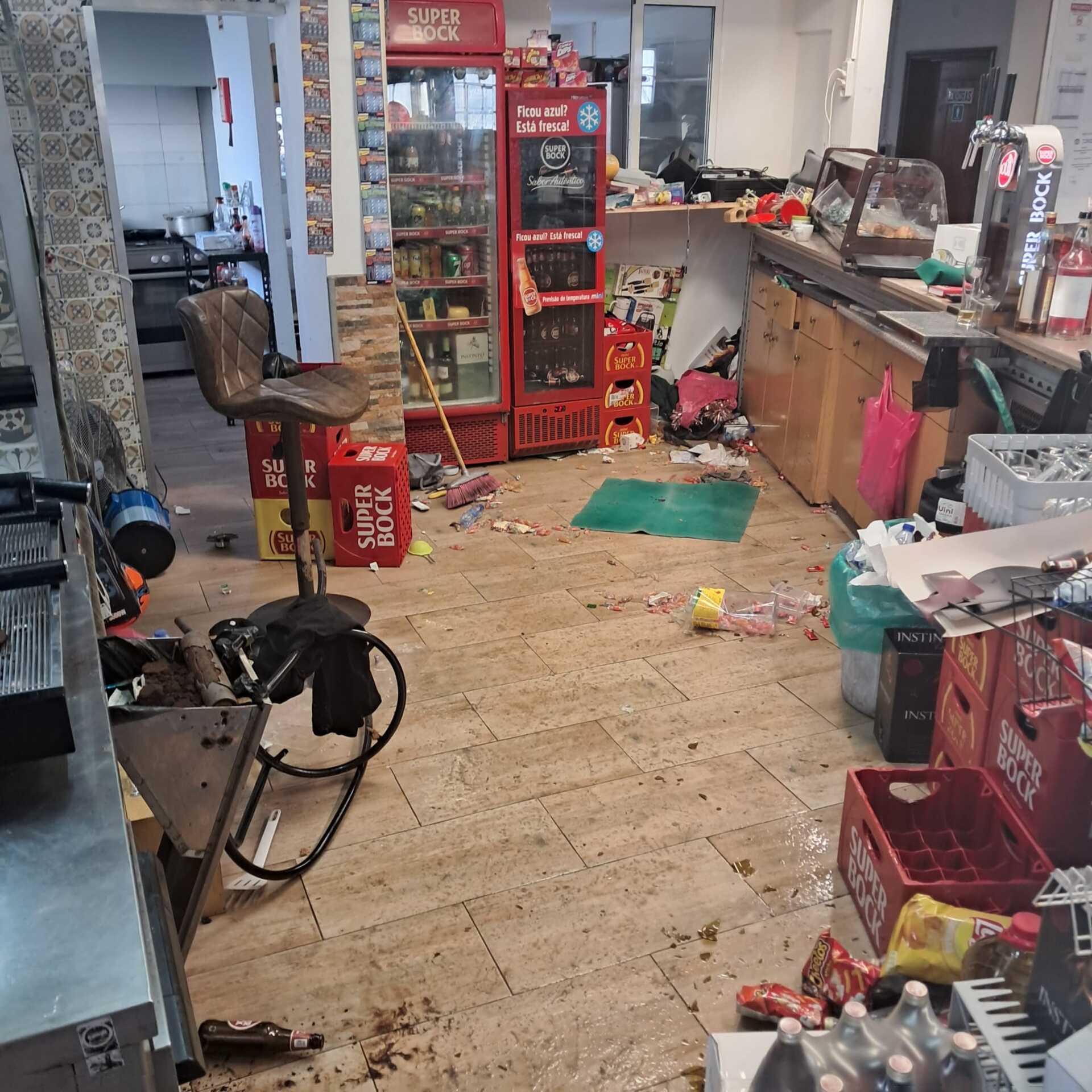 Café ficou parcialmente destruído após as agressões (Foto: Direitos reservados)