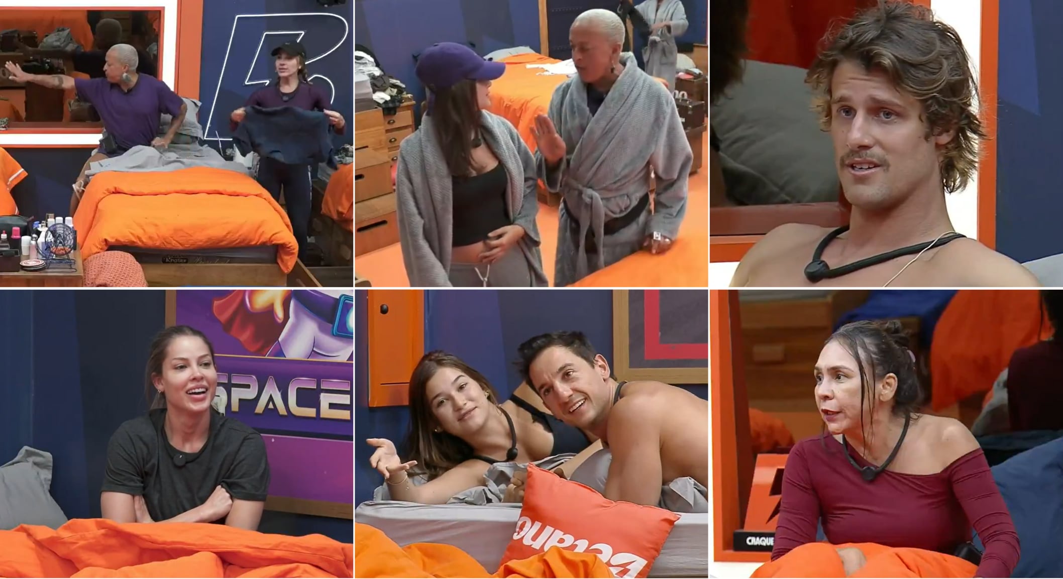 Também rolou discussão entre Duda e Matheus, com alegações de ambos de que um não tira o nome do outro da boca. O modelo apontou: “Provocou para a Martina ser expulsa!” A atriz gargalhou da cara do ex.