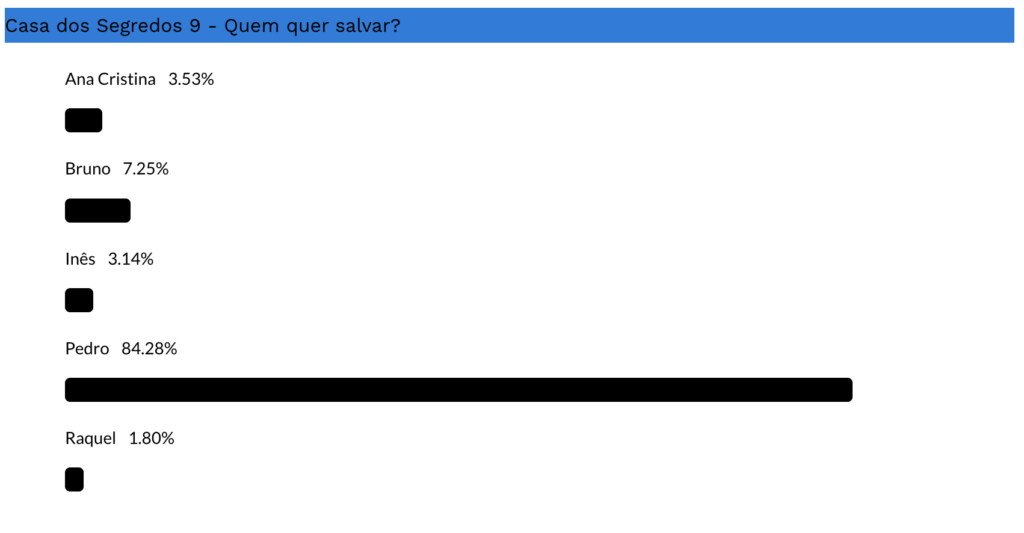 Fomos espreitar os resultados da sondagem que decorre no nosso blog e, para já, os números não deixam grandes dúvidas: há um concorrente claramente em vantagem e tudo indica que será o primeiro a ser salvo esta semana.