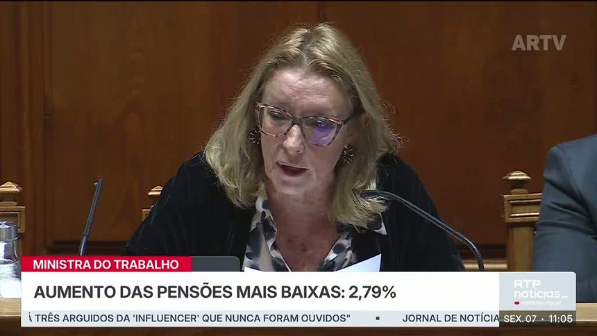 A ministra do Trabalho, Solidariedade e Segurança Social indicou esta sexta-feira, na Assembleia da República, que as pensões mais reduzidas deverão sofrer um aumento de 2,79 por cento em 2026. Maria do Rosário Palma Ramalho condicionou, por outro lado, a atribuição de um suplemento extraordinário à folga orçamental.A governante fala durante a sua audição, em sede de especialidade, a propósito da proposta de Orçamento do Estado para o próximo ano.