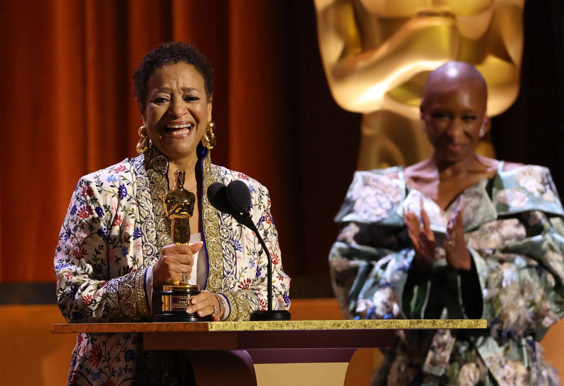 Debbie Allen recebeu a estatueta das mãos de Cynthia Erivo, que a tratou por “Auntie” e divertiu a sala ao recordar a cena icónica de “Risky Business”.