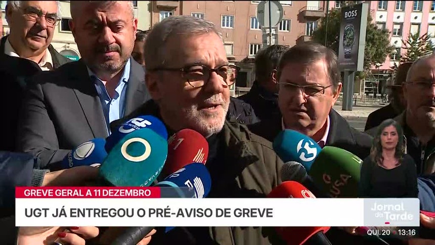 “Entregámos um pré-aviso de greve, de acordo com a decisão dos órgãos da UGT para 11 de dezembro. Até ao dia 11, estamos totalmente disponíveis para o diálogo e negociação. Estaremos totalmente disponíveis para nos sentar à mesa”, afirmou o secretário-geral da UGT, Mário Mourão, que falava aos jornalistas, após a entrega do pré-aviso de greve geral, no ministério do Trabalho, em Lisboa.