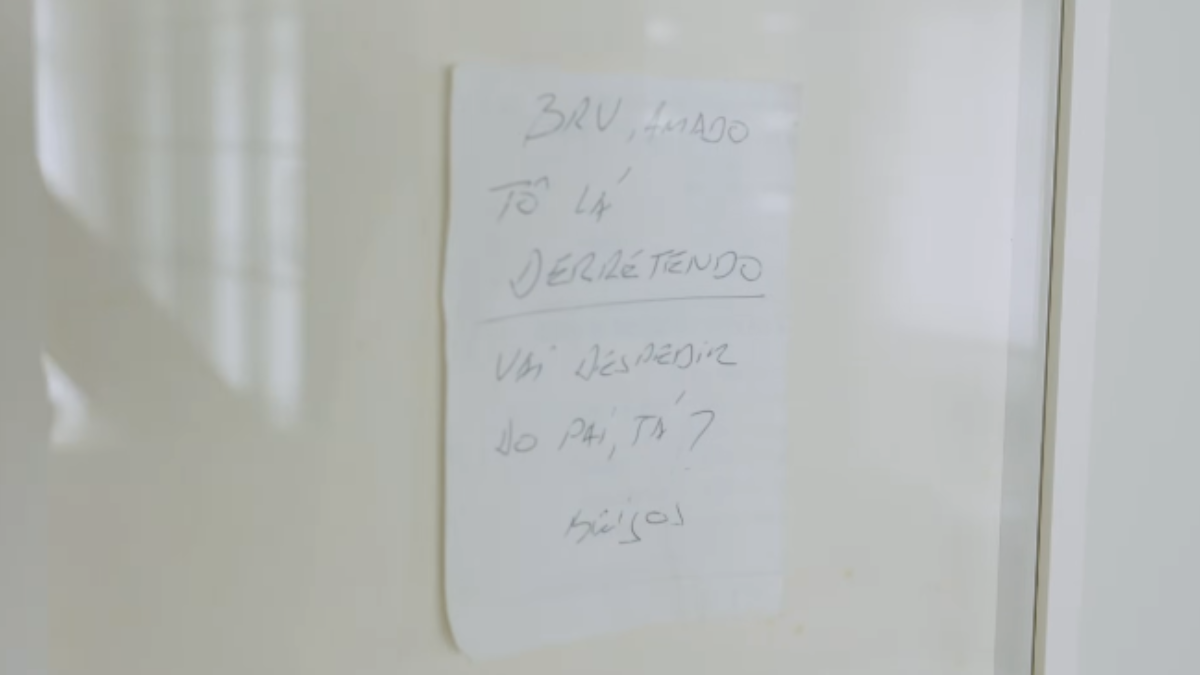 Um bilhete do pai, Antônio Fagundes, fica na parede. (Foto: Reprodução, YouTube, Casa e Jardim)