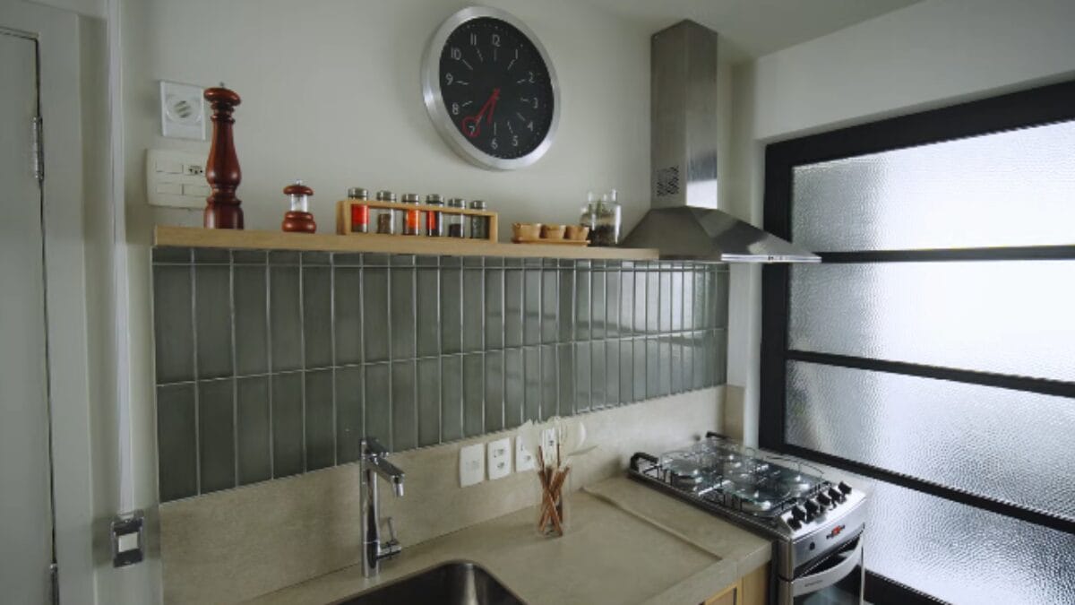 Cozinha também é bem minimalista. (Foto: Reprodução, YouTube, Casa e Jardim)