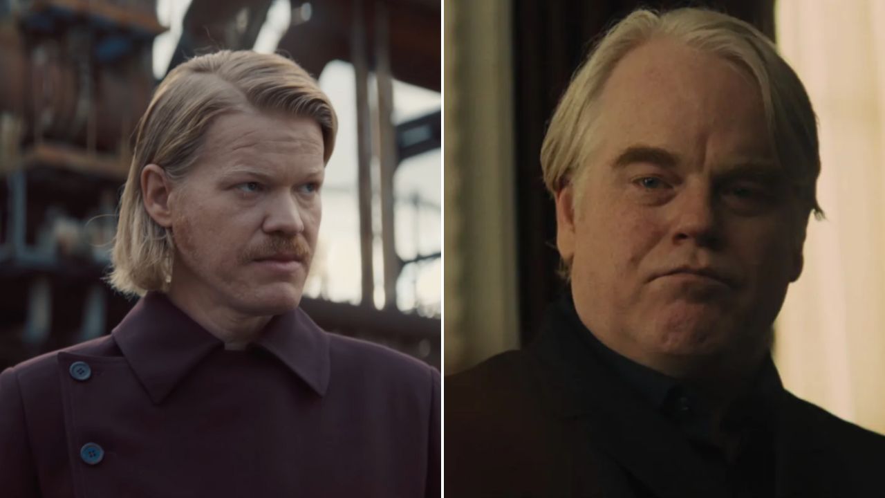 Agora, em “Amanhecer na Colheita”, o personagem será vivido por Jesse Plemons, astro de “Breaking Bad” e “Friday Night Lights”. Apesar da semelhança física entre os atores, a caracterização de Plutarch apresentou duas diferenças notáveis: o comprimento do cabelo e o bigode, utilizado apenas na versão mais jovem do idealizador.