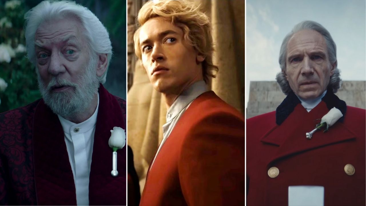 Presente em todos os filmes da franquia, ao total, o tirânico presidente Coriolanus Snow já foi interpretado por três atores, que representaram diferentes fases da vida do personagem: Donald Sutherland na trilogia original, Tom Blyth em “A Cantiga dos Pássaros e das Serpentes”, e agora Ralph Fiennes em “Amanhecer na Colheita”.