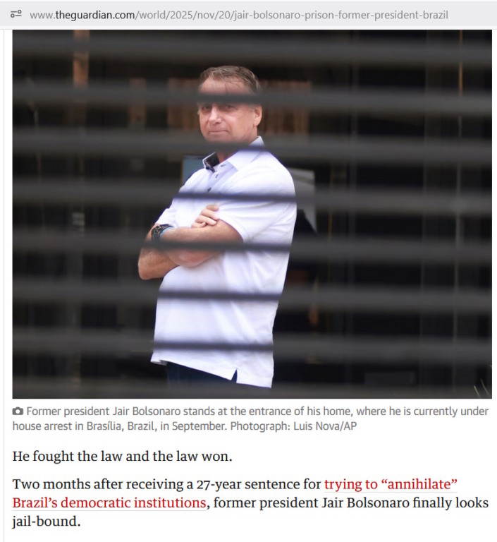 • The Guardian publicou matéria sobre o desânimo dos apoiadores e a iminente prisão de Bolsonaro.