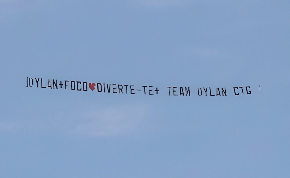 “Dylan mais foco, diverte-te mais. Team Dylan contigo“, podia ler-se na faixa de avião.