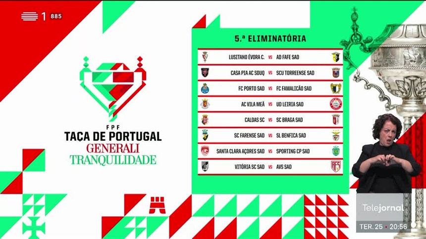 O Sporting, segundo posicionado da I Liga, também terá pela frente nos ‘oitavos’ uma equipa do escalão principal, o Santa Clara (12.º colocado), equipa que bateu na mesma fase da prova na temporada passada, por 2-1, após prolongamento, no Estádio José Alvalade. Esta época, os ‘leões’ terão de se deslocar aos Açores.
