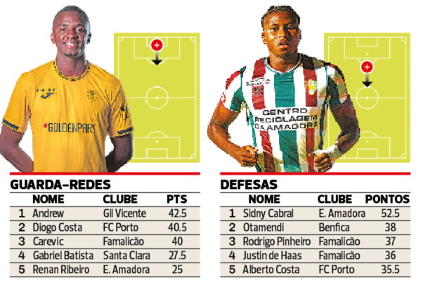 Destaque também para Francisco Moura o melhor em campo em Famalicão onde cruzou para o único golo da partida; o menino Renato Nhaga, que saltou do banco para iniciar e concluir o lance do empate do Casa Pia na Luz; e Oumar Camará, decisivo no penálti que deu a vitória vimaranense em Tondela.