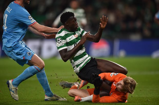 Foi já perto do final do jogo que se deu um choque com Salvador Blopa. O jovem jogador leonino tentava, in extremis, fazer o quarto golo, mas acabou por, na queda, chocar contra o peito do guarda-redes do Club Brugge.