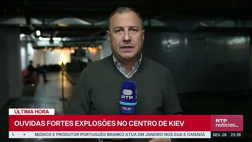“Há explosões na capital e a defesa aérea está ativada. O ataque do inimigo continua”, avisou Vitali Klitschko, enquanto fortes estrondos foram ouvidos e reportados por jornalistas da AFP no centro da capital.