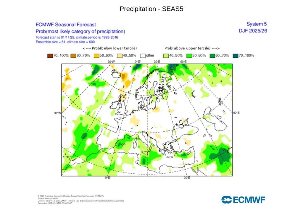 As primeiras tendências sugerem um inverno instável no sul da Europa, em contraste com o que poderá acontecer na Europa Central ou nas redondezas do Mar do Norte.