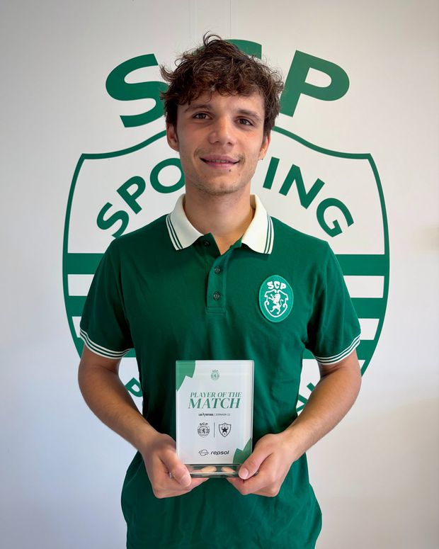 Eduardo Quaresma com a placa de MVP – Foto: SPORTING CP