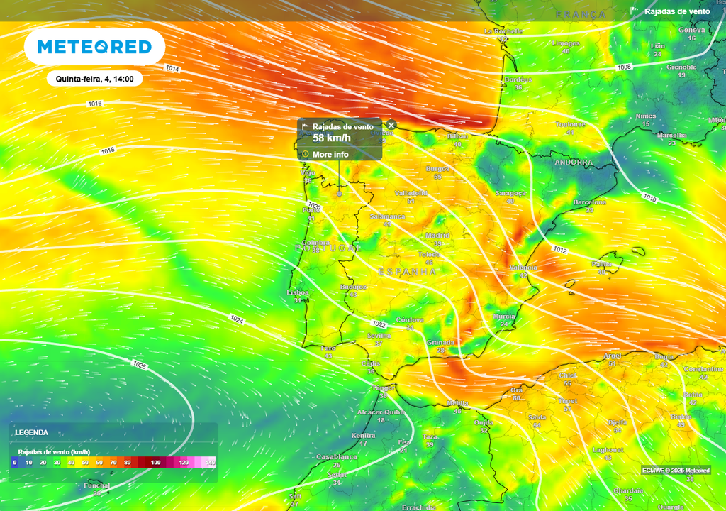 A estabilidade durará pouco. Logo na madrugada de quinta-feira, aproxima-se uma nova frente atlântica de deslocação rápida, que trará céu muito nublado e precipitação generalizada durante a primeira metade do dia. A chuva será mais intensa no litoral norte e centro, onde acumulados horários poderão ultrapassar os 6 mm.